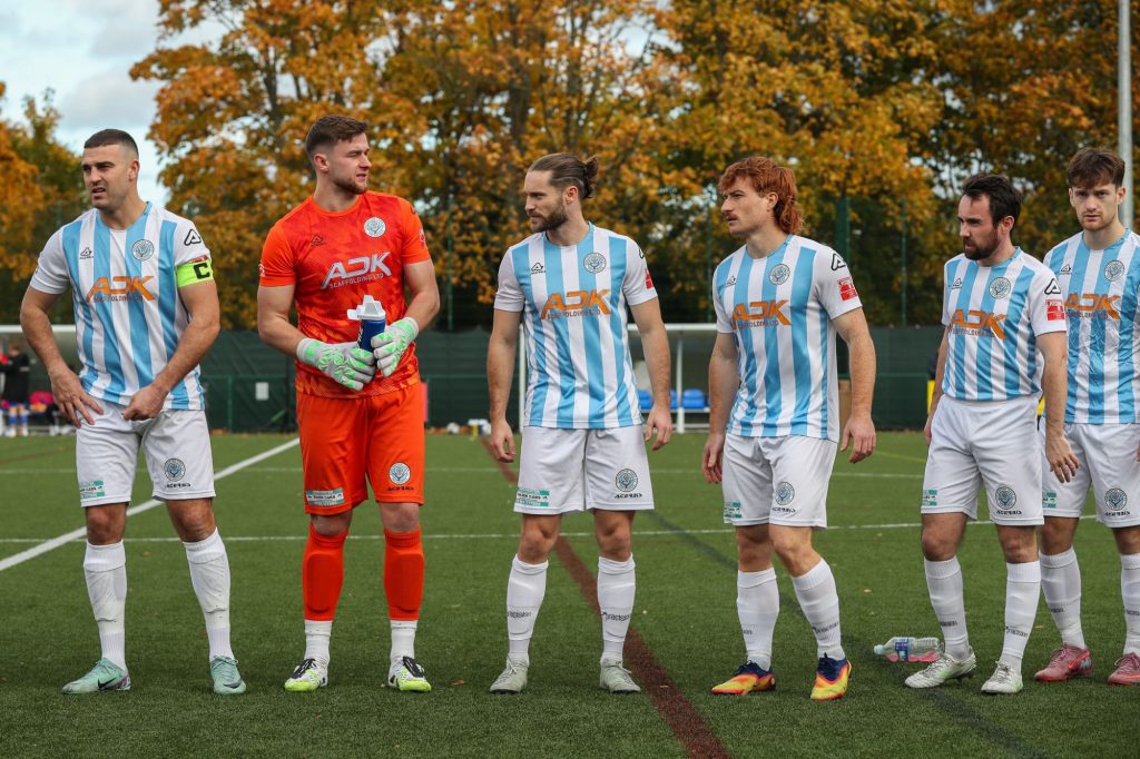 As the rest of the cast assembled we made our way to the battle bus. We had left plenty of time to get to Bracknell with only a couple of pickups. Ash White was collected from Puddletown, and what would appear to have been the reanimated corpse of Joe Prior joined us at Ferndown having been to a Halloween party the night before, I assume as a zombie. After a quick stop at Rownhams and as Prior tried to catch up on lost sleep we hit a bit of traffic that knocked our ETA back a bit, which was not the best news for the other JP who was joining us as he’d taken the option of the 1230 arrival into Sandhurst and was now watching the youth game at the ground with a pint and a lot of bemused parents.