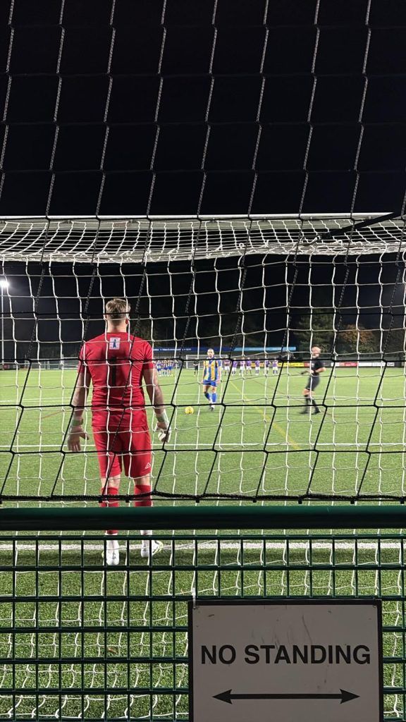And a bright start we saw, but sadly it was for the home side. Any rust that Gez might have had was quickly shaken off as the home side certainly didn’t play like a side bottom of the league. A brilliant save away to his right after only ten minutes was the highlight, but he was kept busy as Bracknell moved the ball well and created a few decent opportunities. On the flip side of that, we were struggling to put anything of note together and as we played our weekly game of ‘who is playing where’ the weather started to worsen and the rain started to fall, sending a number of us looking for shelter.