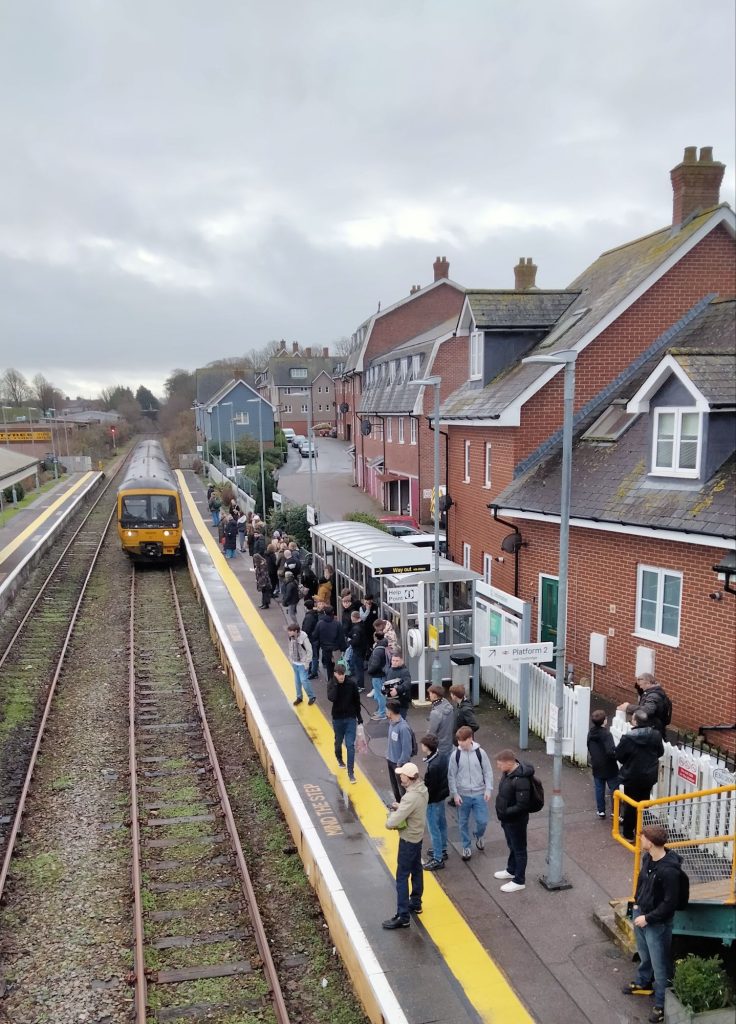 If Yate had done well to get the midweek game on, our trip there on Saturday looked in serious jeopardy from the moment the fulltime whistle blew as their pitch seemed to have precious little time to recover. With a lot of rain and no good weather to speak of, the Yate ground staff had to get the pitch playable for Saturday, and when it was announced the precautionary pitch inspection had been passed at 0930, I had to quickly kit up and leave the house to get the 0944 train from Dorch West that took me all the way to Yate. The platform wasn’t quite as rammed as when we travelled en masse to Frome last season, but there were a good 20 odd Dorch on the train, and a surprising lack of Weymouth fans given they were only playing one stop further down at Gloucester. I assume their countless fans had a football special laid on for them.