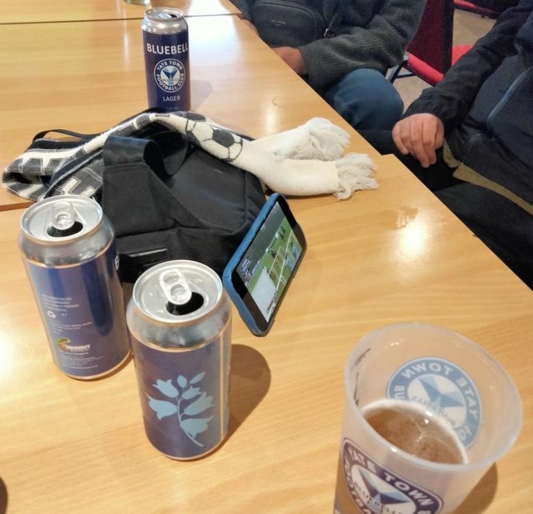 Buik wasn’t finished with obscure topics for the trip, and as Goddard joined the train at Bristol Parkway with our destination fast approaching, Buik presented him with a bottle of Hardy’s Ale from 1983. The self-titled “Strongest Beer in Britain” that had been in Bu’s cupboard since ’83, was given the ‘it’s up for grabs now’ treatment, and impressively managed to taste worse than it smelt. Not exactly the sort of thing you want to be bolting down in only a few minutes as your train is due to arrive. We soon pulled into Yate, and as the youth headed off both banging the drum and letting off a purple smoke to inform the locals of their arrival, we headed in the direction of the ground and a nearby pub. Or we did eventually after initially taking a wrong turn.
